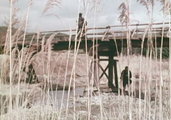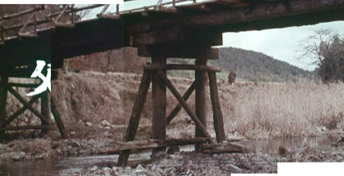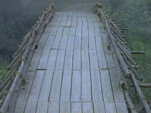 | 「新・木枯し紋次郎」の「第1話 霧雨に二度哭いた」の橋。上の画像と踏み板の数が一致。 ↓ |