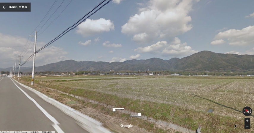| ストリートビューの画像は赤い矢印あたりから取得した。白い線で囲ったあたりがロケ地であろう。 |