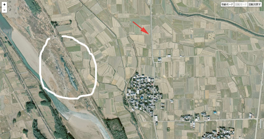 | 国土地理院の「国土変遷アーカイブ」による現地周辺の1975年撮影の航空写真。 ↓ |