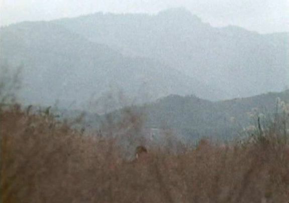 | 「京都市右京区嵯峨罧原(さがふしはら)町」の桂川堤防から取得したグーグルのストリートビューの画像。山並みが一致。ロケ場所はおそらく桂川の河原であろう。 ↓ |