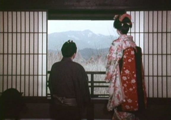| 「第10話 やぐら太鼓が風に哭いた」とほぼ同じ場所。桂川の河原に旅篭のセットを組んだのではなかろうか? このシーン。 ↓ |