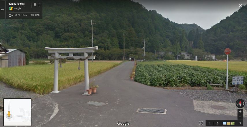 | グーグルのストリートビューの画像。見にくいが奥にもう1つ鳥居がある。 ↓ |