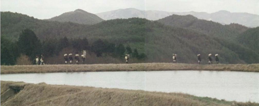 | ある程度までは絞り込めたのだが、ズバリここという絵が見つからない。暫定的な紹介ということでご理解いただきたい。 ★ロケ推定地を見つけましたのでこちらをご覧ください。(2020.05.22追記) このシーン。(切り貼り合成画像) ↓ |
