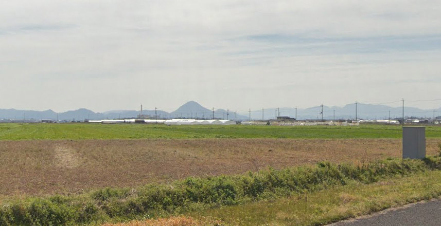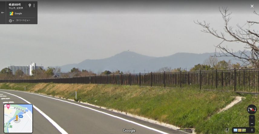 | グーグルのストリートビューの画像。琵琶湖西岸の山並み。 ↓ |