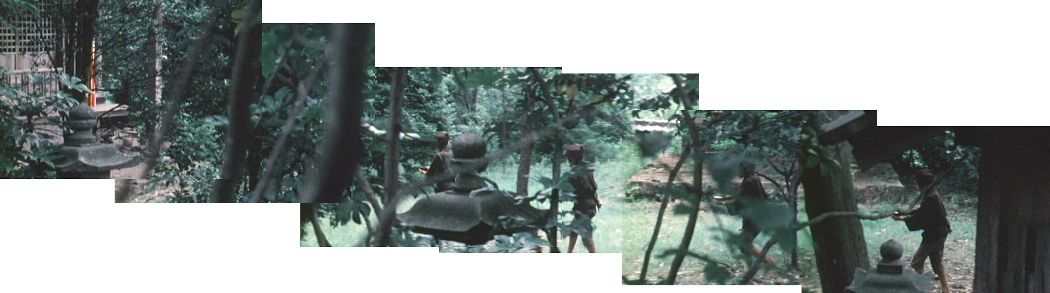 | 左手に庚申堂、右手に鐘楼の土壇。(切り貼り合成画像) ↓ |