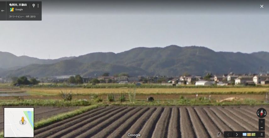 現地のやや西から取得したグーグルのストリートビューの画像。山並みが一致。