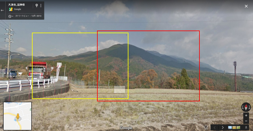 | グーグルのストリートビューの画像。黄色い枠は画像Aと、赤い枠は画像Bと一致。 ↓ |