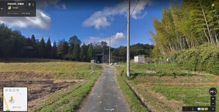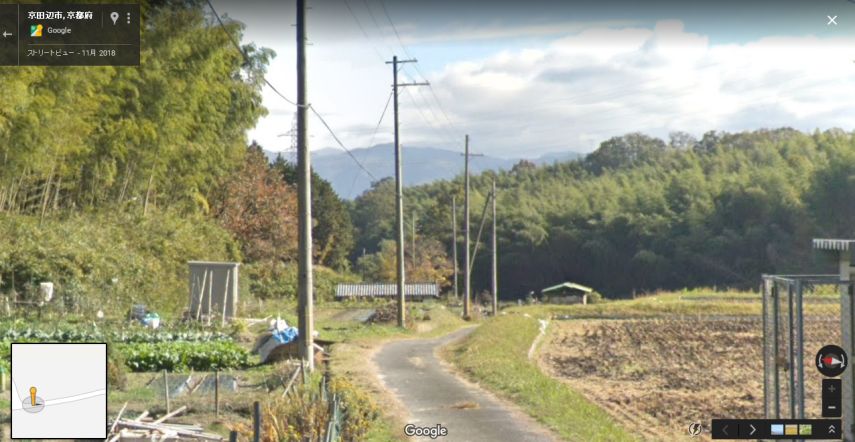 | グーグルのストリートビューの画像。奥には京阪奈道路ができた。 ↓ |