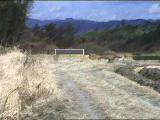 | 左奥に見える小屋は、航空写真の黄色い矢印の小屋だと思われる。 ↓ |