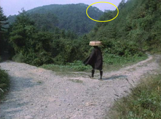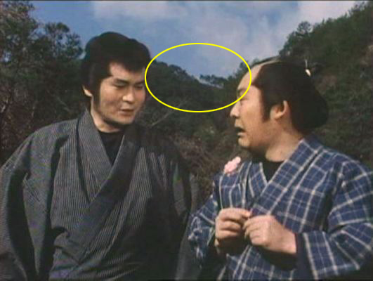 | 「木枯し紋次郎」の「飛んで火に入る相州路」。黄色い円内の枝振りが一致していると思う。 ↓ |