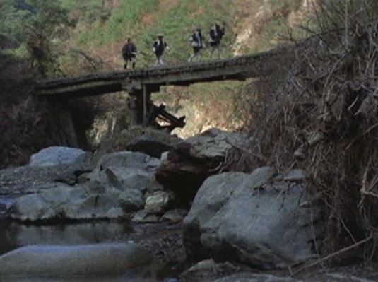 | 「木枯し紋次郎」の「錦絵は十五夜に泣いた」の橋。矛盾しない形状である。 ↓ |