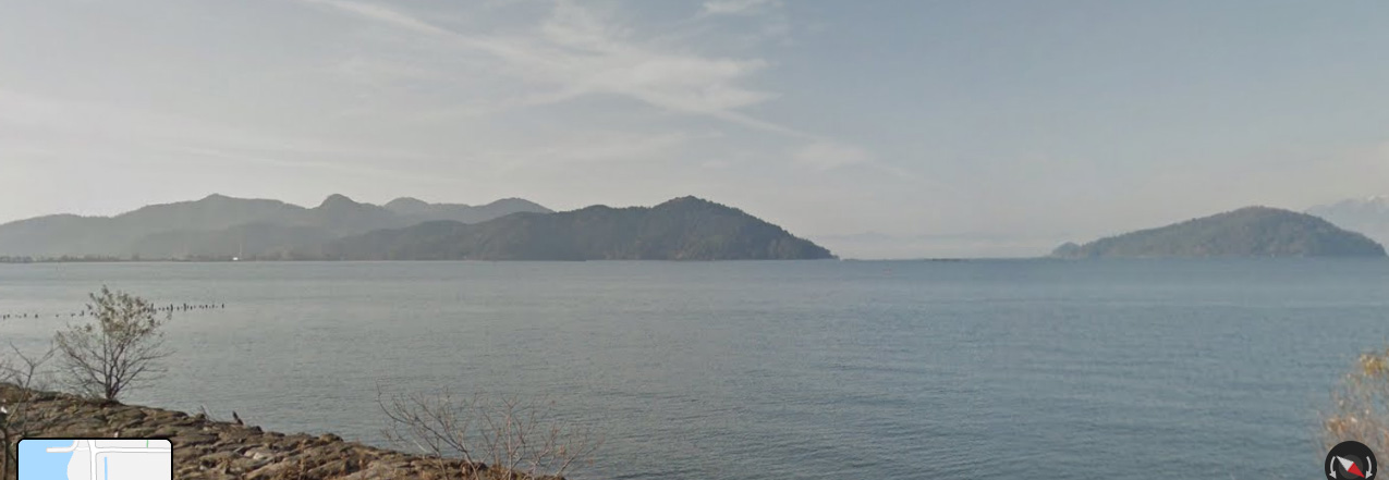 | 実は上のシーンの右手にある沖島。(切り貼り合成画像) ↓ |