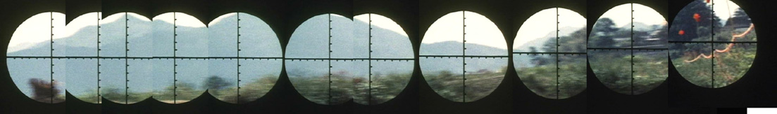 | 黄門様が覗く測量器から見た山並み。(切り貼り合成画像) ↓ |