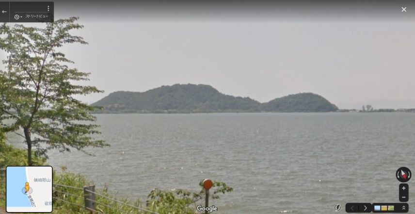 グーグルのストリートビューの画像。映っているのは島ではなく「岡山」という山。
