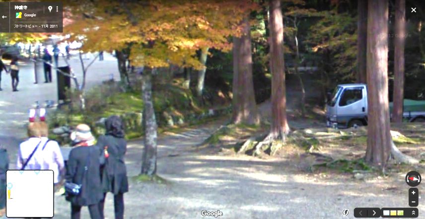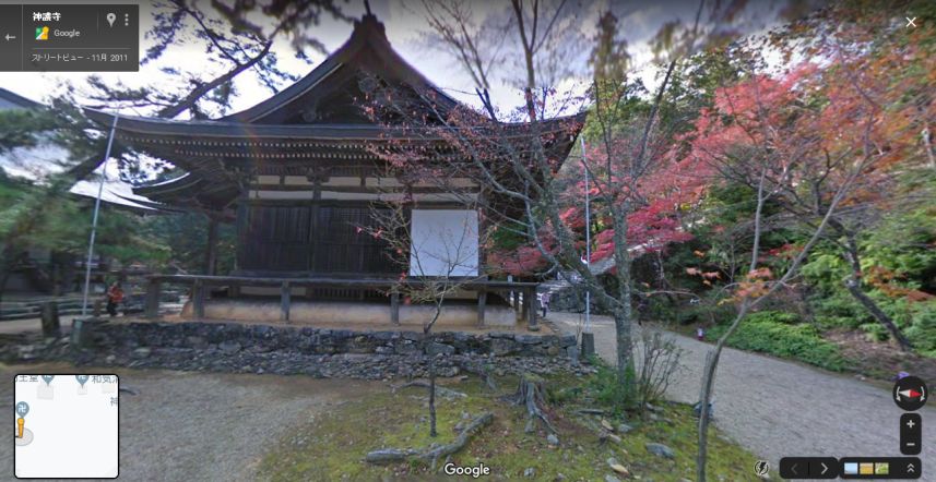 | グーグルのストリートビューの画像。映っているのは神護寺の五大堂。奥に石段も見える。 ↓ |