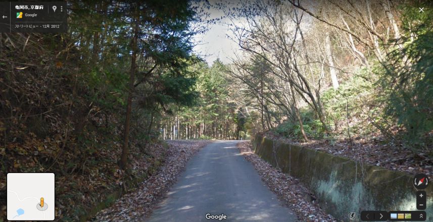 | グーグルのストリートビューの画像。奥の左手に枝道がある。 ↓ |