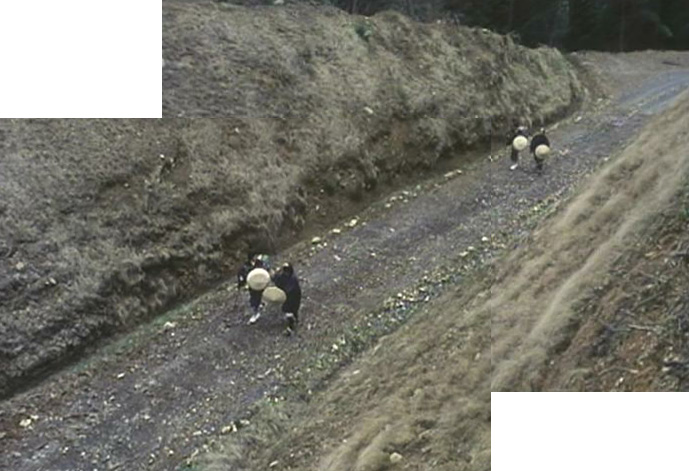 | このシーン。奥の左手に枝道があるように見える。(切り貼り合成画像) ↓ |