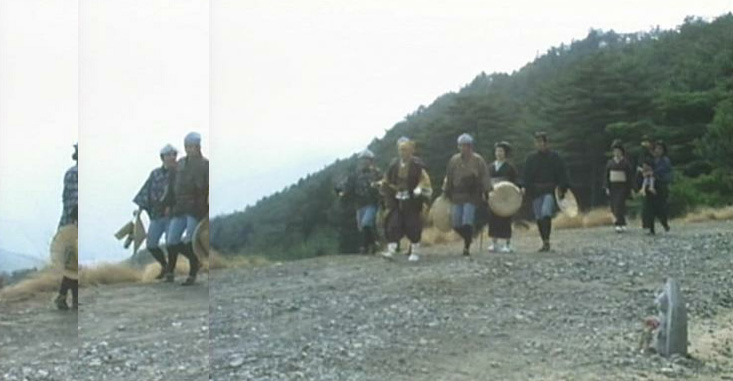 | 「水戸黄門(第8部)」の「第14話 飛龍の火祭り」のシーン。右上の木立ちが一致。 ↓ |