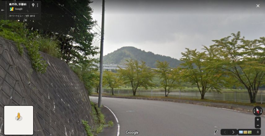 | グーグルのストリートビューの画像。見づらい画像だが、映っているのは船井神社。 ↓ |