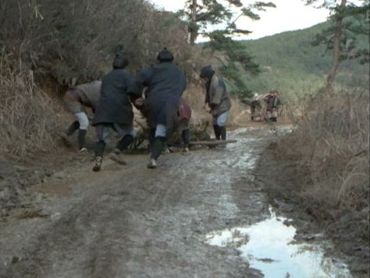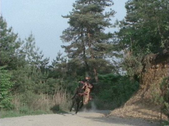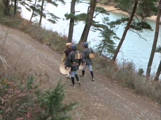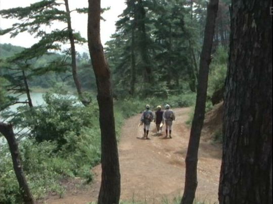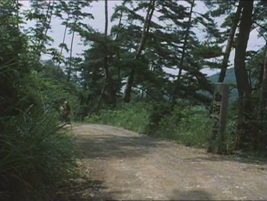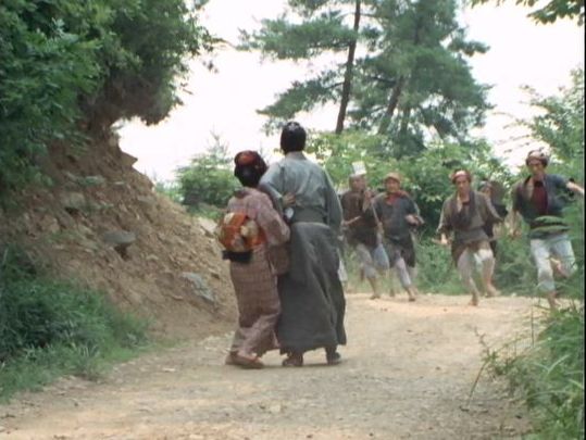 | なかなか物証が得られないのだが、件の山道が出てくる時には、大抵中山池周辺でのロケシーンが見つかるので、可能性は高いと思う。以下まとめて紹介する。なお撮影方向はバラバラである。 「水戸黄門(第1部)」の「第6話 暁を駆ける」(1969年)。 ↓ |