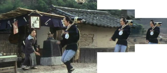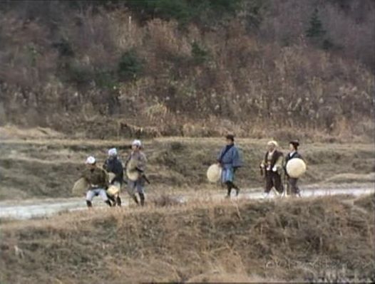 | *なおこの項は「興戸川原谷」を参照のこと。 このシーン。左の稲木小屋に注目。(切り貼り合成画像) ↓ |