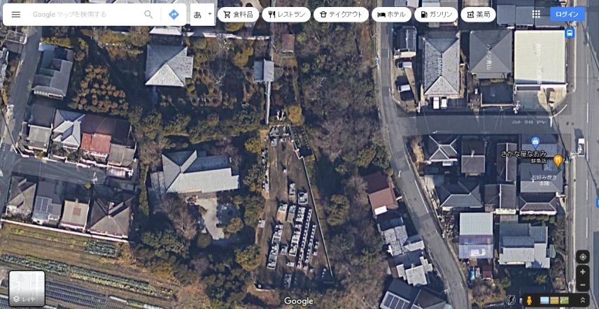 グーグルの空中写真。今ではお墓が立ち並んでいる。