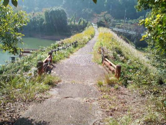 | ★テレビ時代劇「水戸黄門(第8部)」の「第6話 自慢高慢馬鹿のうち」(1977年)の街道は、「京都府亀岡市下矢田町中山」の中山池の堰堤★ |