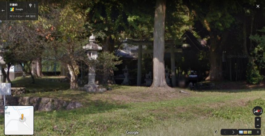 | 神社のやや東から東方向を見る。(切り貼り合成画像) ↓ |