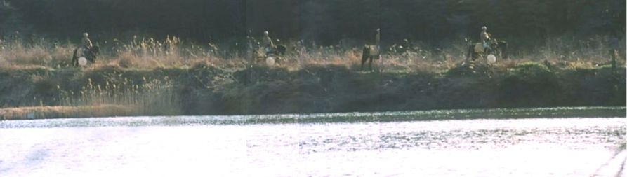 | 池の東岸から西を見ているらしい。(切り貼り合成画像) ↓ |
