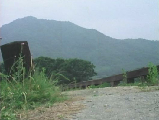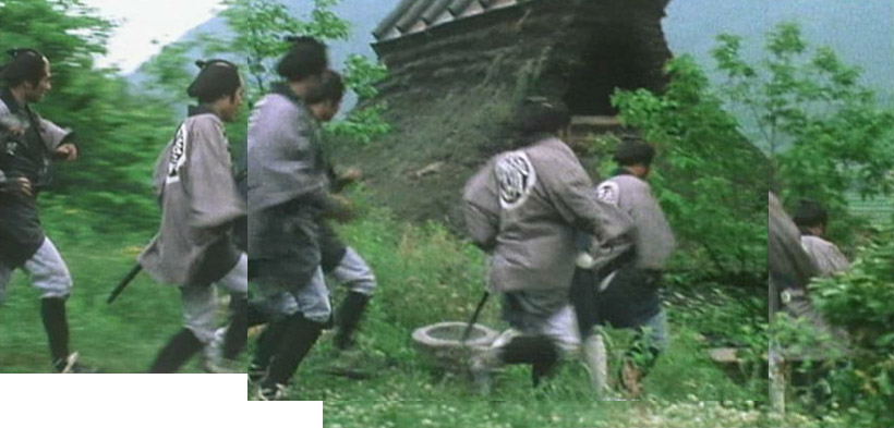 | 「桃太郎侍」のシーン。中央やや右の萱葺民家がここ。 ↓ |