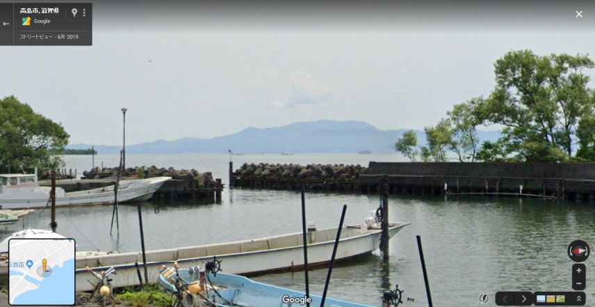 松ノ木内湖近くの漁港から取得したグーグルのストリートビューの画像。山並みが一致。