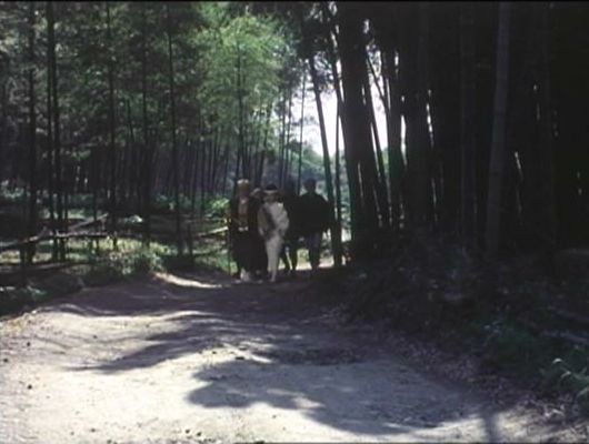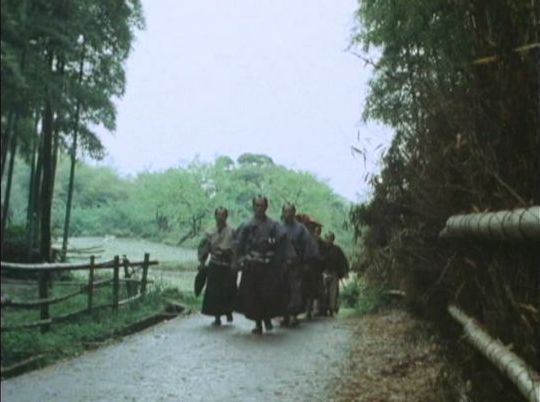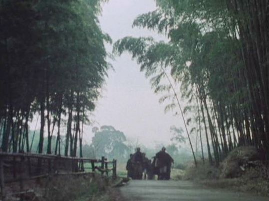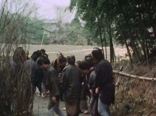 | ★「桃太郎侍」の「第31話 宵宮に消えた神輿」(1977年)のシーン。左右に竹林、左手に側溝と竹の柵、奥に田んぼ。 ↓ |