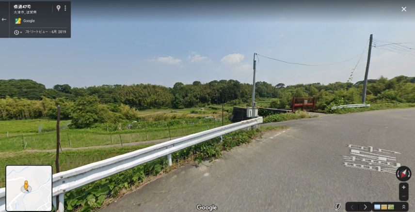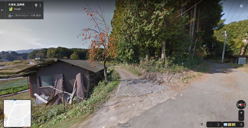 | グーグルのストリートビューの画像。本編に映っているのは、この枝道だと思われる。 ↓ |