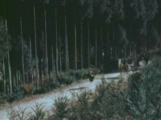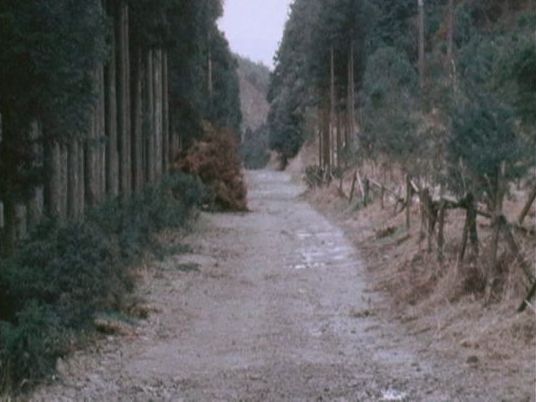 | ★いろいろな時代劇で頻出するが、皆目所在地がわからない杉並木の街道★ おそらく京都市右京区京北(旧京北町)の桂川上流あたりかと思われるのだが、道路が拡張・舗装されてしまってロケ地特定に至っていない。 |