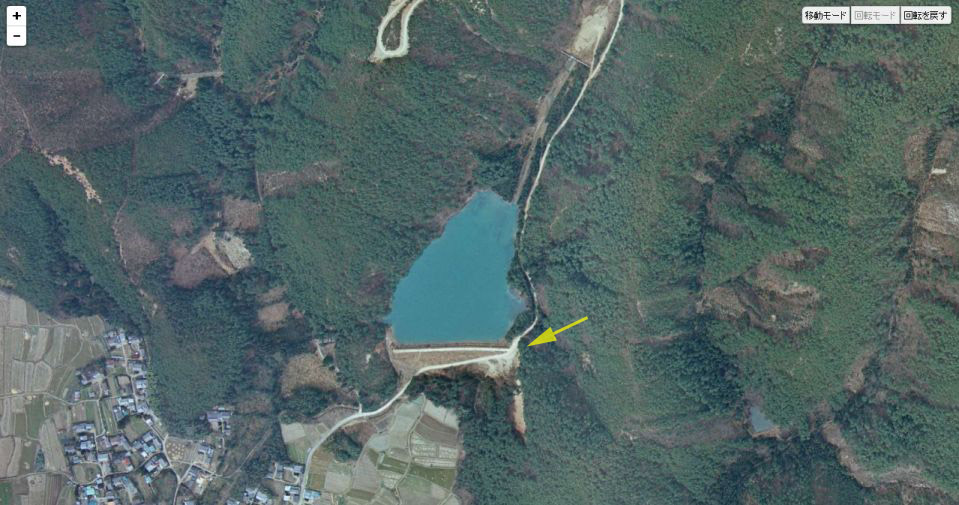 | 国土地理院の「国土変遷アーカイブ」による1975年撮影の航空写真。黄色い矢印がロケ地。 ↓ |