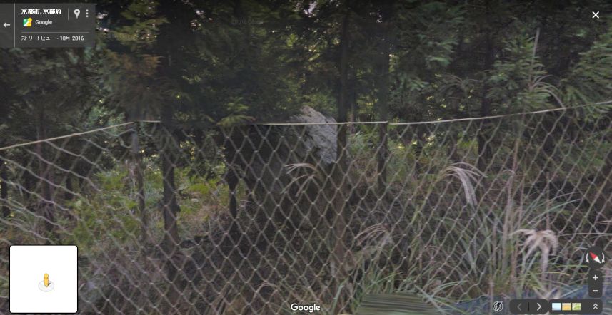 | グーグルのストリートビューの画像。谷山林道脇に転がっている巨石。植生は苗木が伸びたような雰囲気。 ↓ |