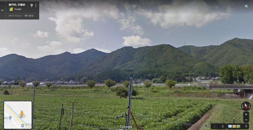 | グーグルのストリートビューの画像。中央の山並みが一致。 ↓ |