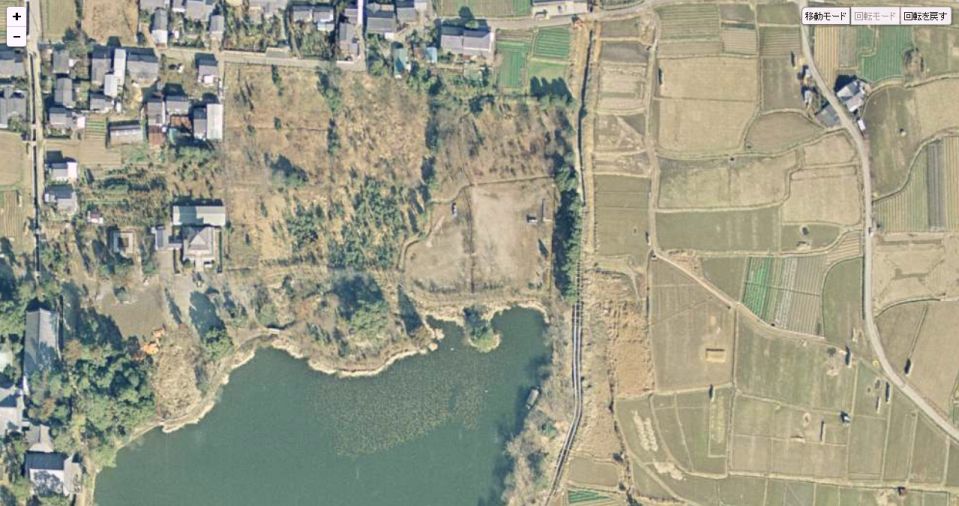 | 国土地理院の「国土変遷アーカイブ」による現地周辺の1975年撮影の航空写真。当時は単なる広場だった。 ↓ |