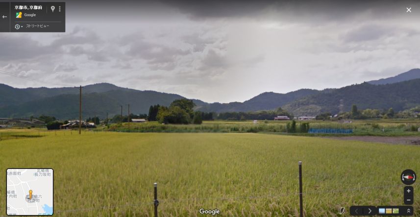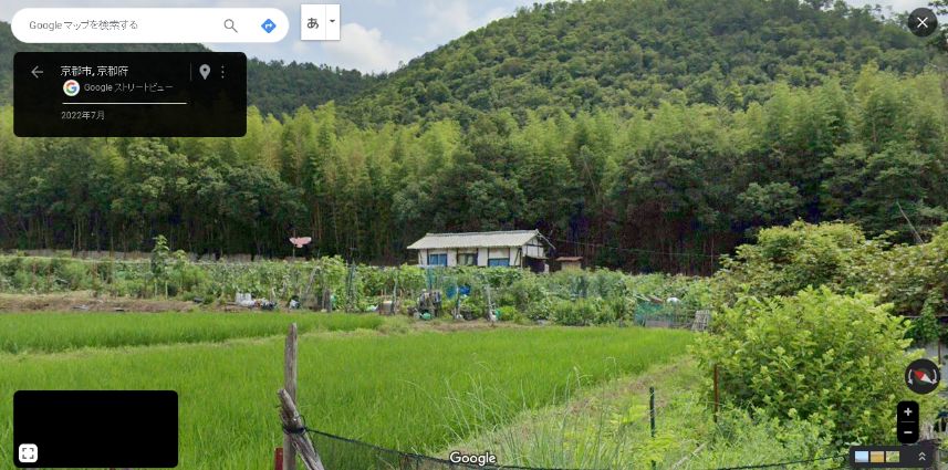 | グーグルのストリートビューの画像。現地の北東の、この小屋が映り込んでいると思われる。 ↓ |