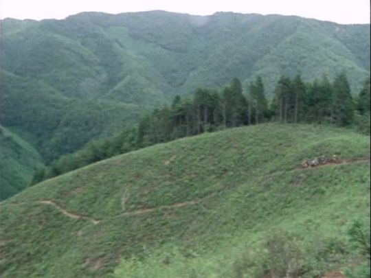 | 「新・木枯し紋次郎」のシーン。山並みが一致。ただしこちらの方が高度が高いのでしっくりしない。 ↓ |