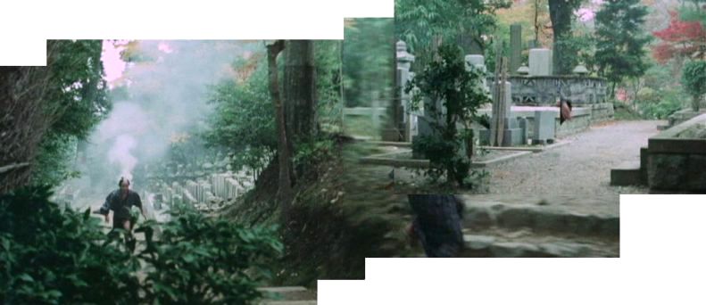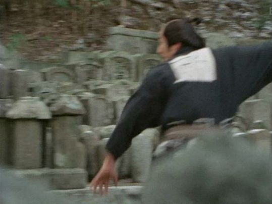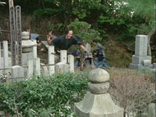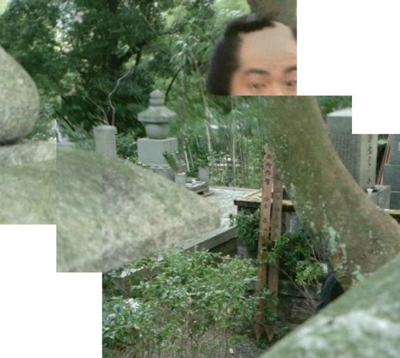 | 「長七郎天下ご免!」のシーン。左手奥が六体地蔵尊、右手が本編のお墓。 ↓ |