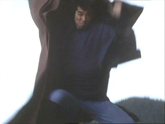 飛び出してきたのは風車の弥七(のスタントの人)。