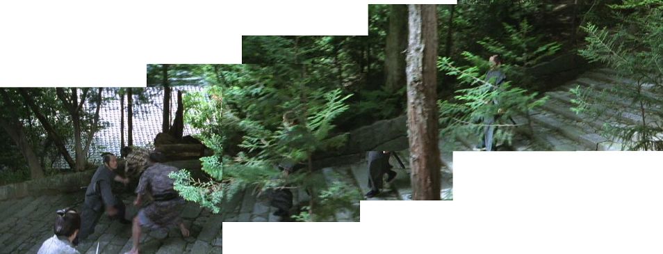 | 舞台と本殿。(切り貼り合成画像) ↓ |