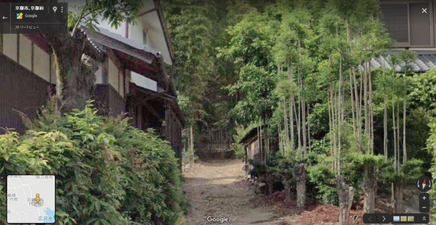 ★テレビ時代劇「水戸黄門(第23部)」の「第4話 助さん格さん用心棒」(1994年)の小道は、「京都市右京区北嵯峨六代芝町」の「民宿わらびの里」の西沿いの道だと思う★