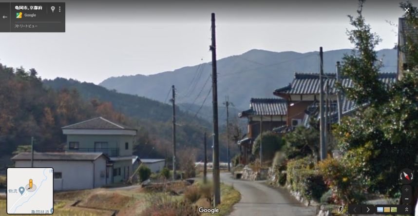 | 谷あいのストリートビュー到達の最深部から取得した画像。残念ながら池の間際までストリートビューが通っていない。当然ながらこの場所がロケ地というわけではない。 ↓ |