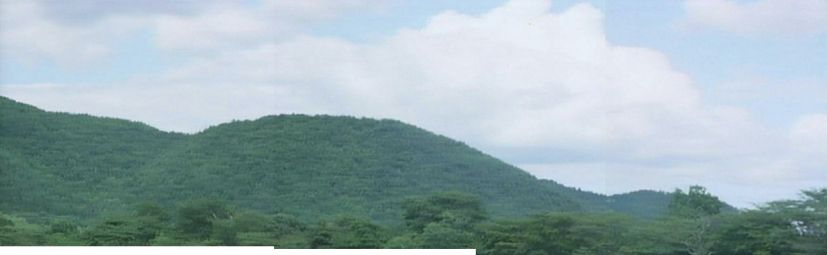 こちらも同寺の大沢池から北東を見た絵。(切り貼り合成画像)