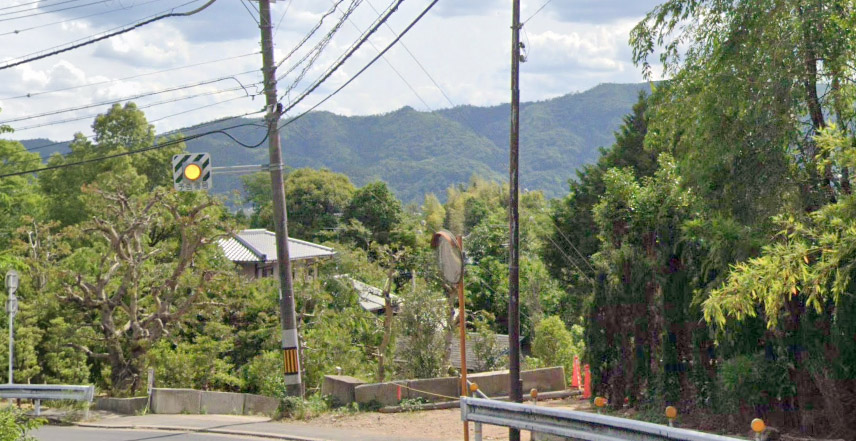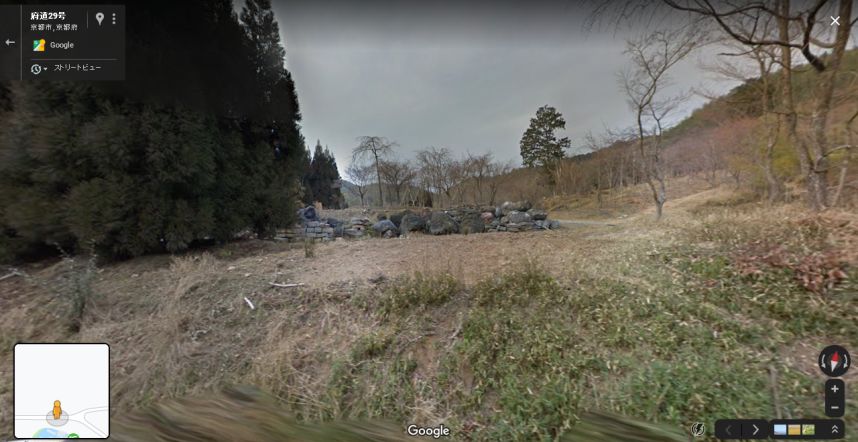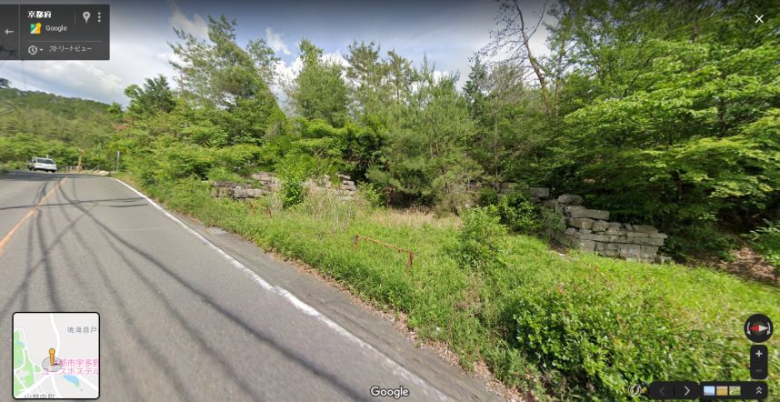 | グーグルのストリートビューの画像。ここで撮ったわけではないだろうが、園内に本編のような石垣・巨石があってもおかしくないと思う。 ↓ |