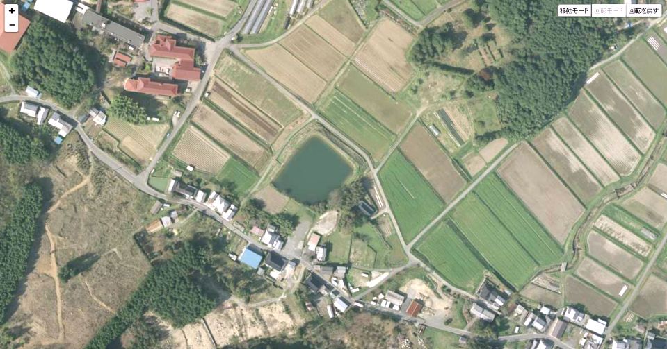国土地理院の「国土変遷アーカイブ」による現地周辺の2008年撮影の航空写真。溜池の北の角がロケ地であろう。