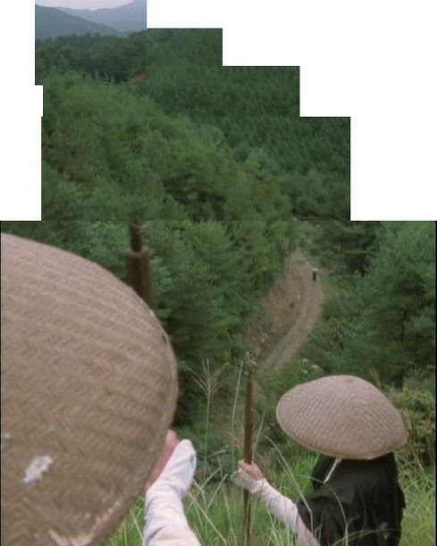 | 「水戸黄門」のシーン。右下を見下ろしていると思う。 ↓ |