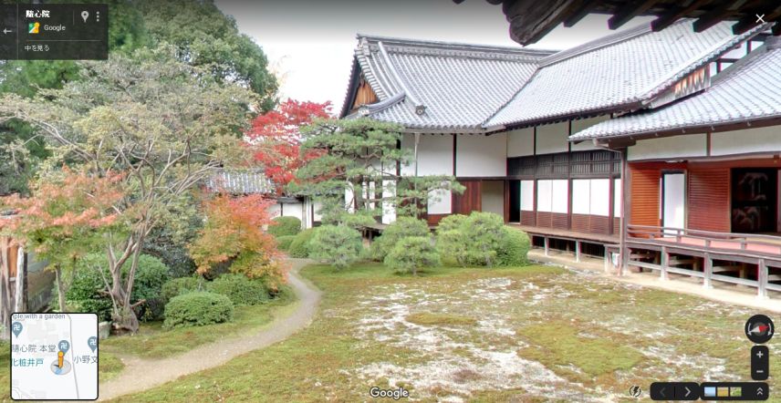 グーグル・ストリートビューの画像。随心院本堂前の庭園と書院。